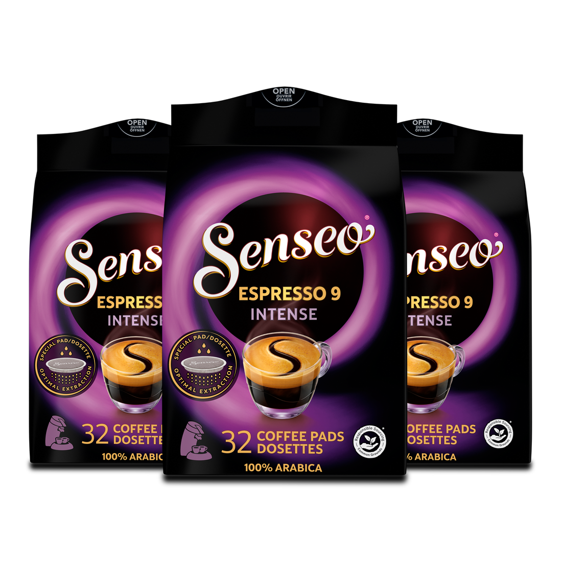 Senseo Espresso Intense, 96 Count (3 Packs of 32), Bold Dark Roast Coffee Soft Pods Compatible with PeleCom Coffee Machine